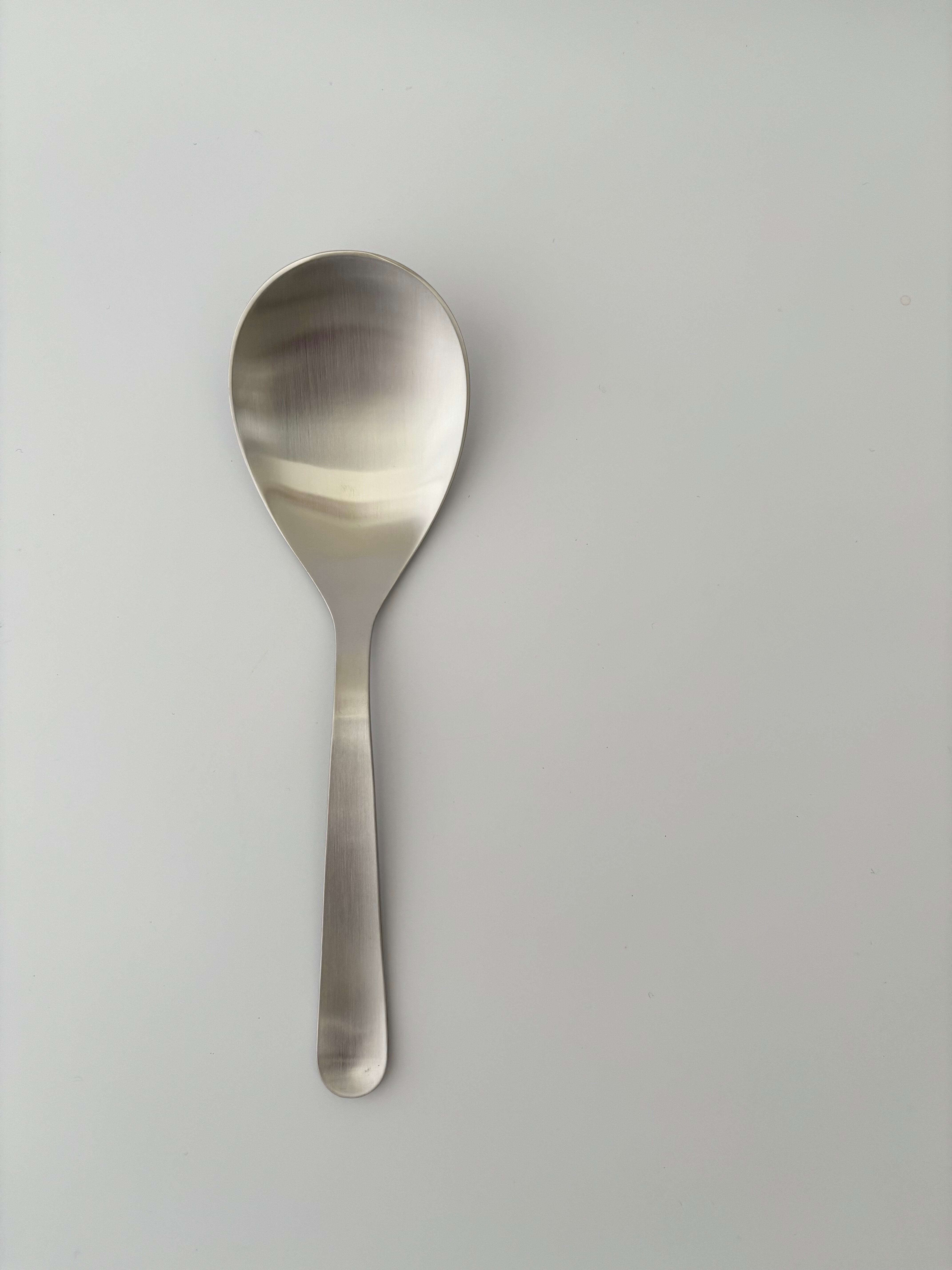 何より、マットなステンレスの、ゆるやかなカーブを描くシンプルな形が、とても美しいスプーン。