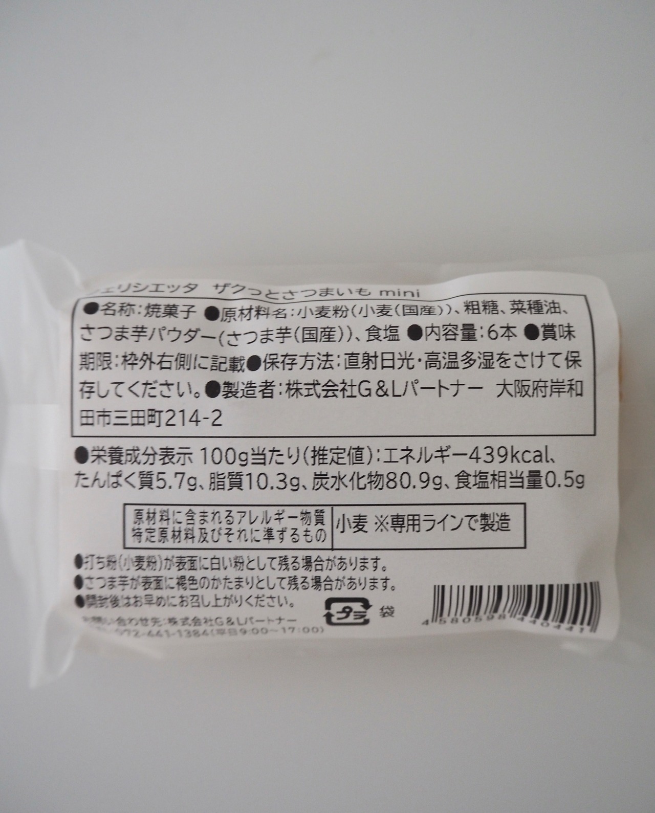 《原材料》小麦粉(国産)、相糖、菜種油、さつま芋パウダー(さつま芋(国産))、食塩