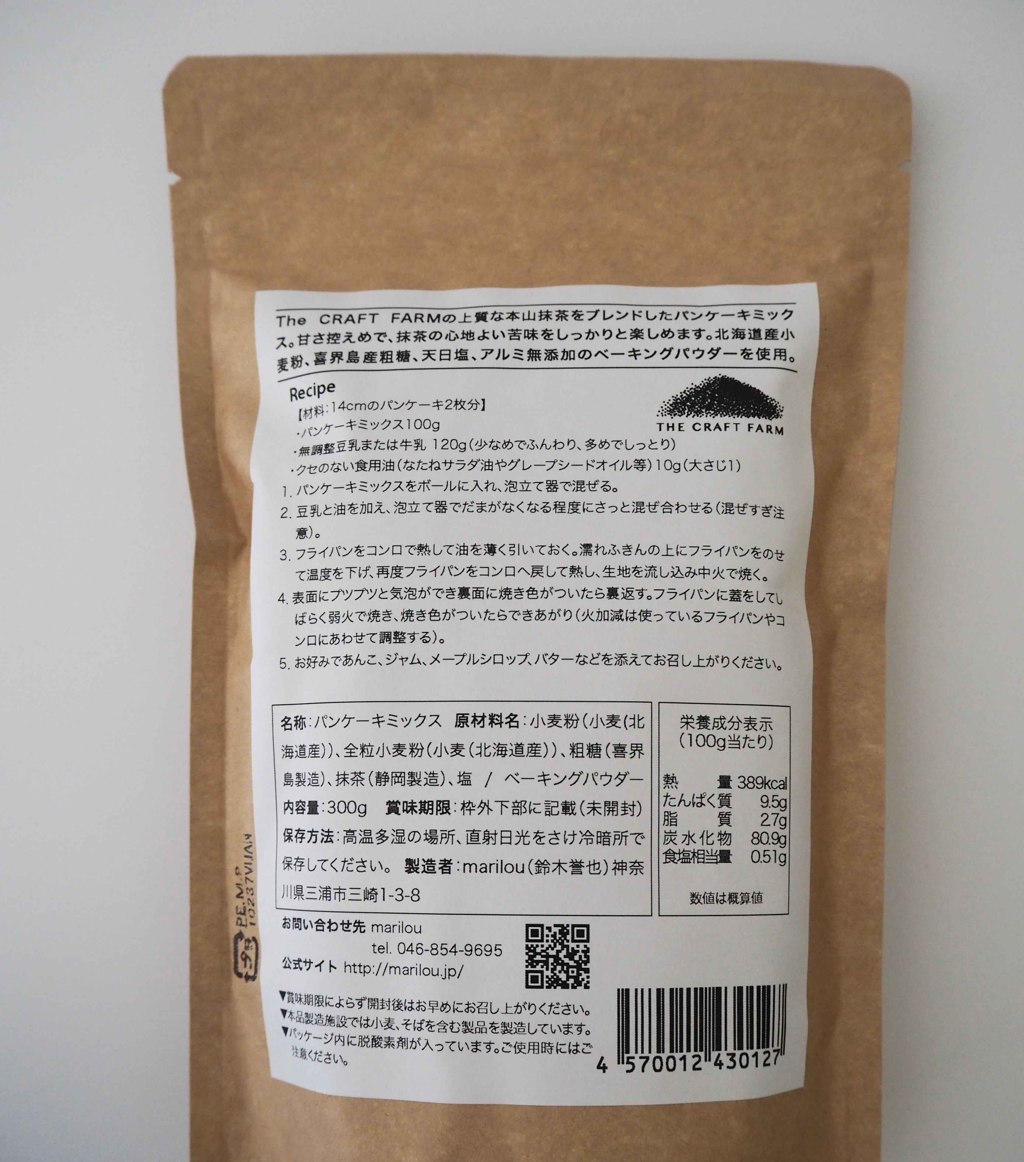 吟味された材料で作られるマリールゥさんのシンプルなパンケーキミックスに、抹茶味が新登場です。