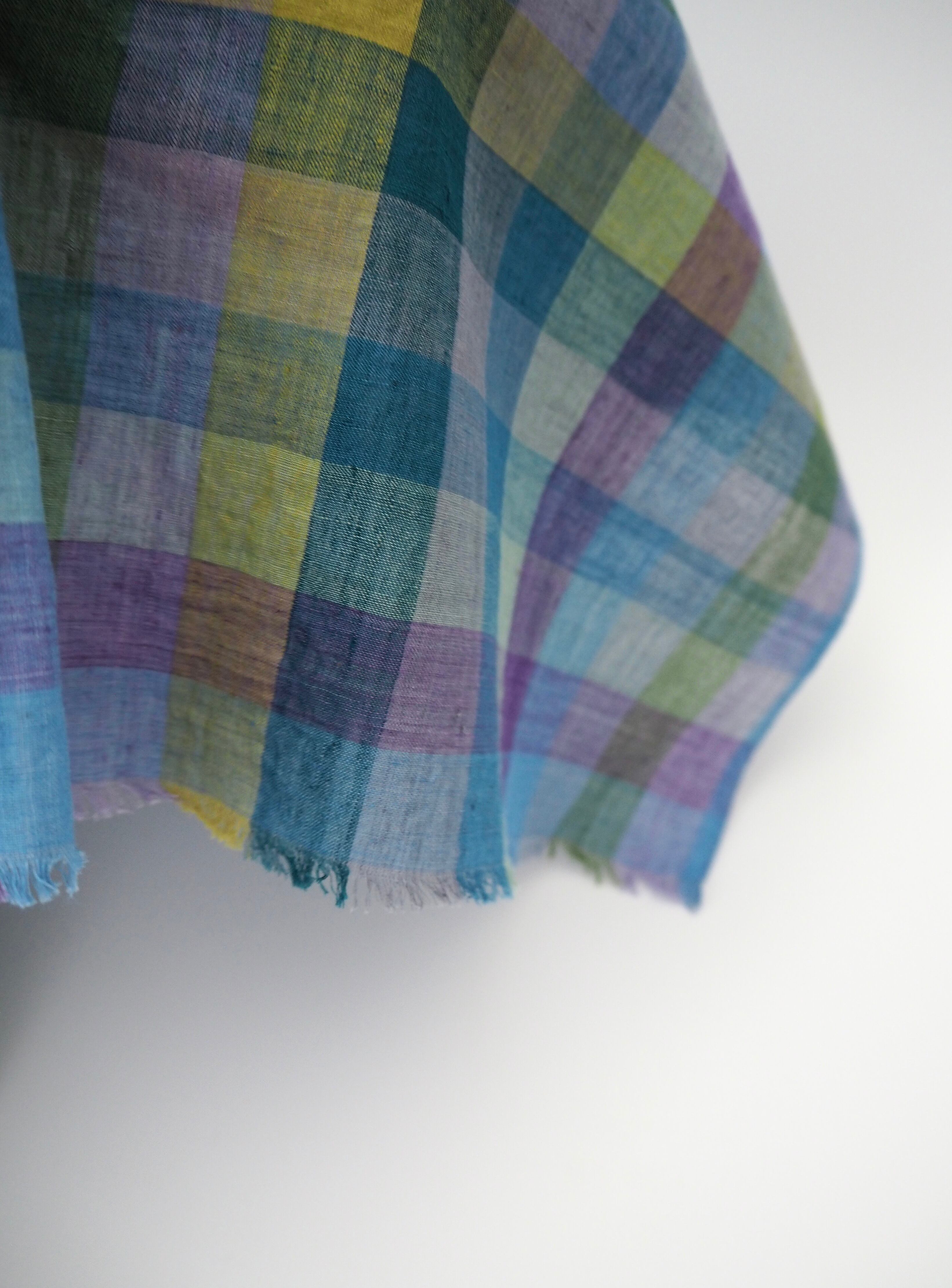 インドで手仕事布のデザイン企画・生産などの活動をされている「CALICO」さんの、マルチカラーチェックのカディコットン生地をストールに仕立ててみました。