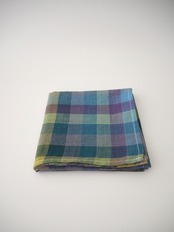 インドで手仕事布のデザイン企画・生産などの活動をされている「CALICO」さんの、マルチカラーチェックのカディコットン生地をバンダナに仕立ててみました。