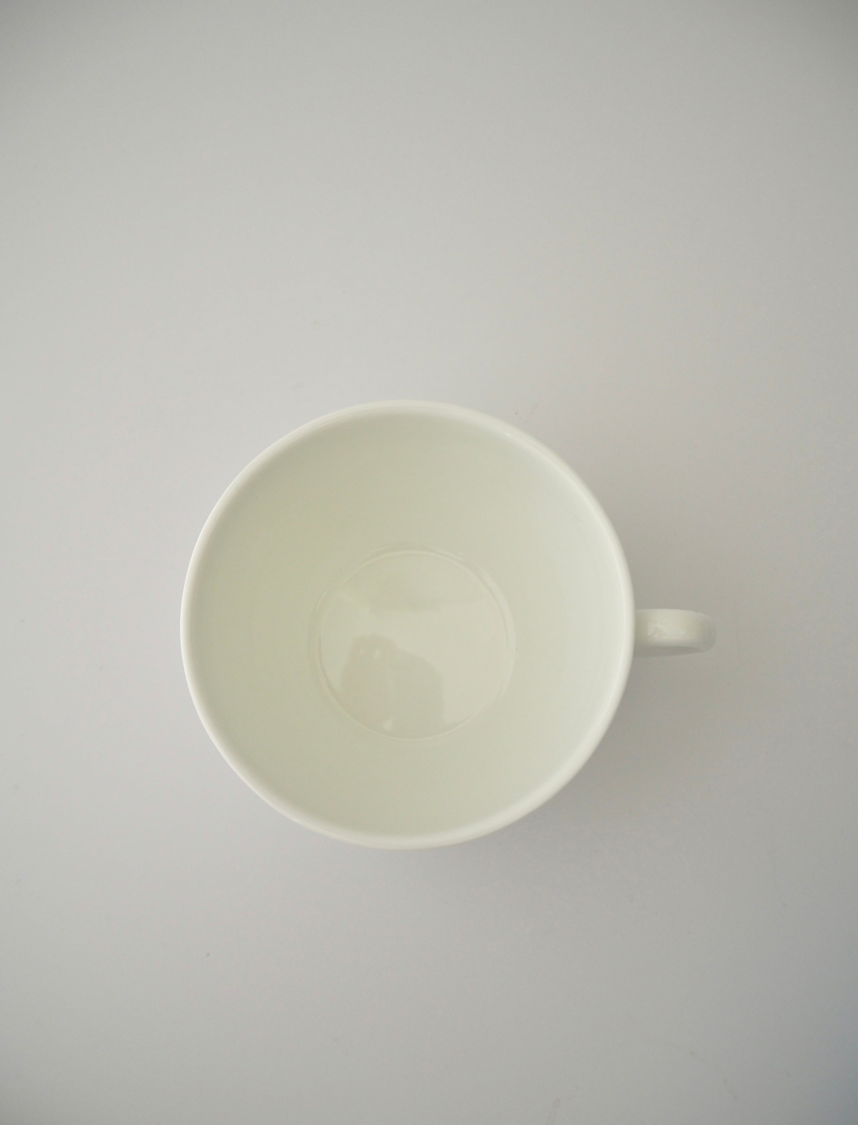 透明感のあるシンプルな白いカップは、飽きずに長く使える一品。