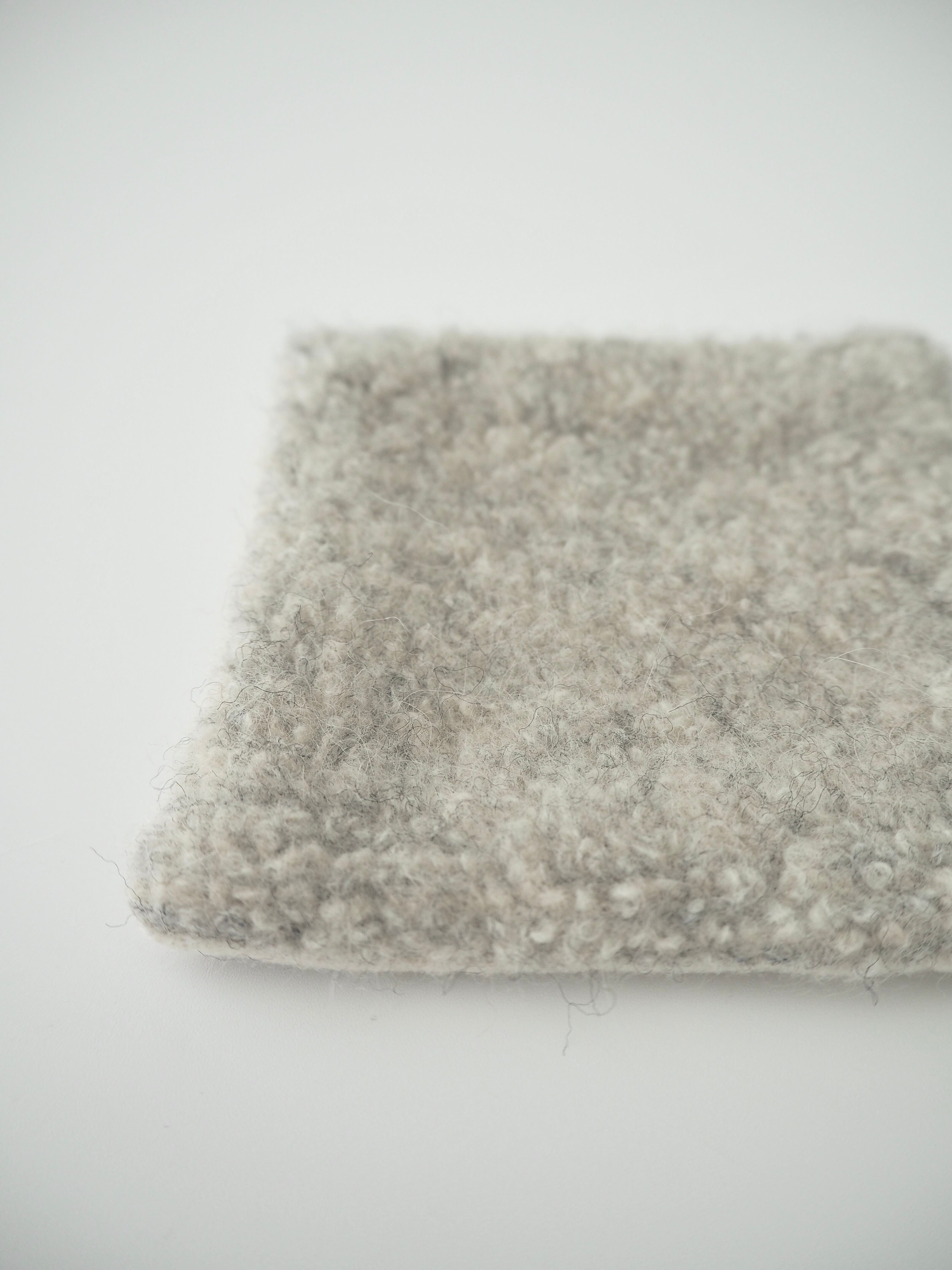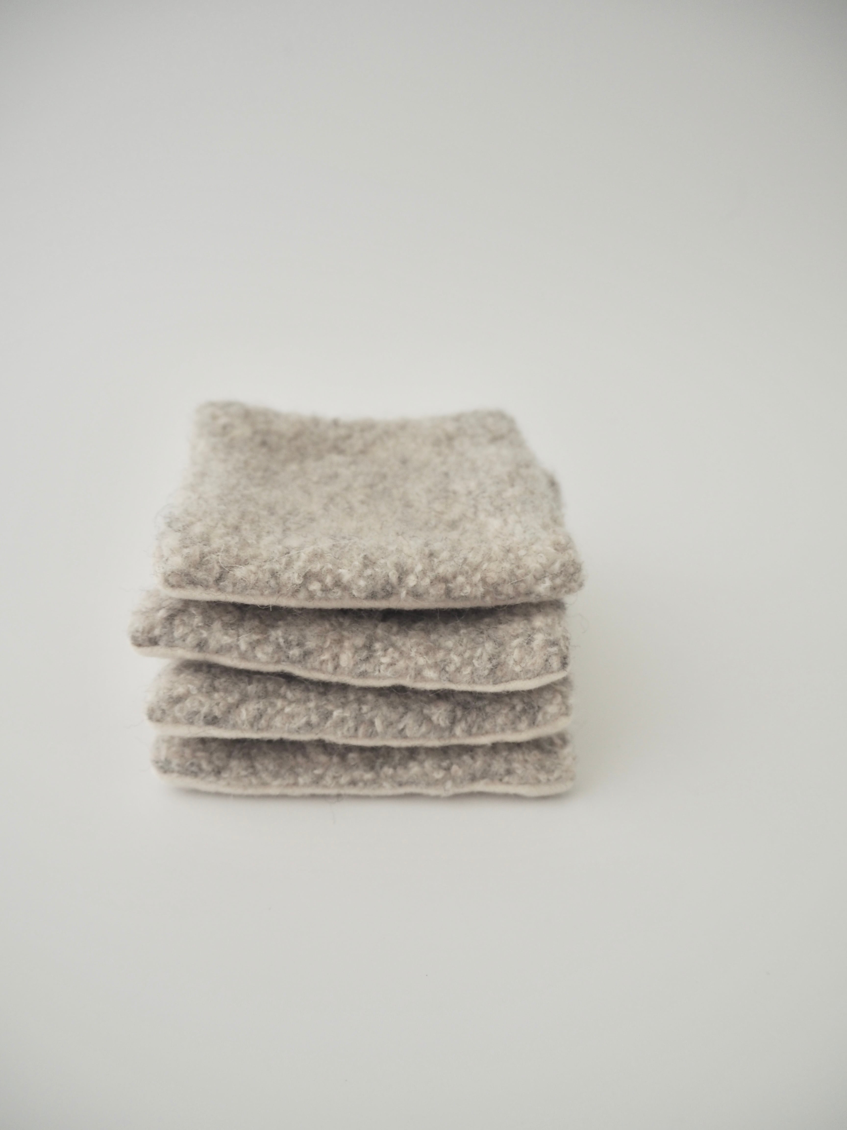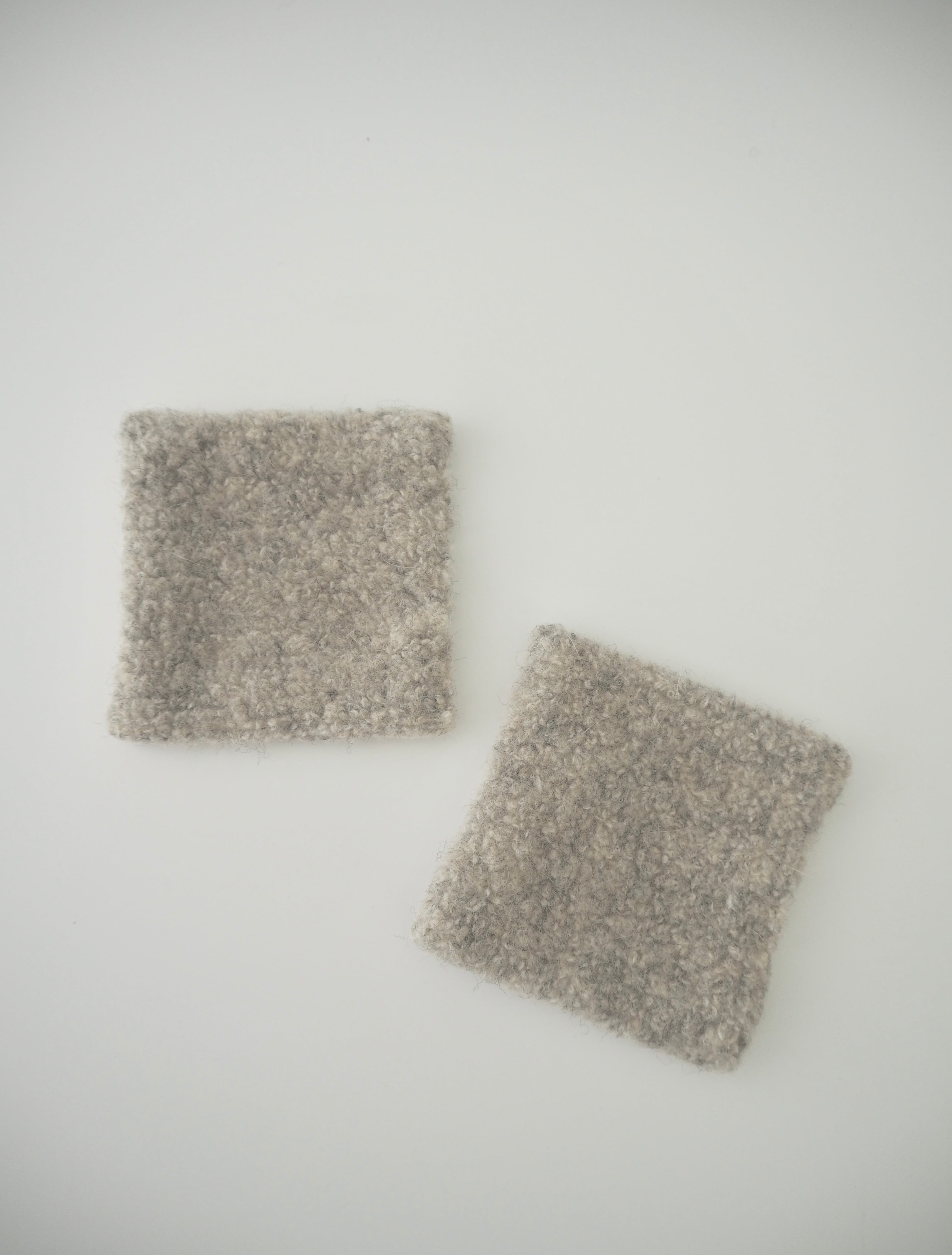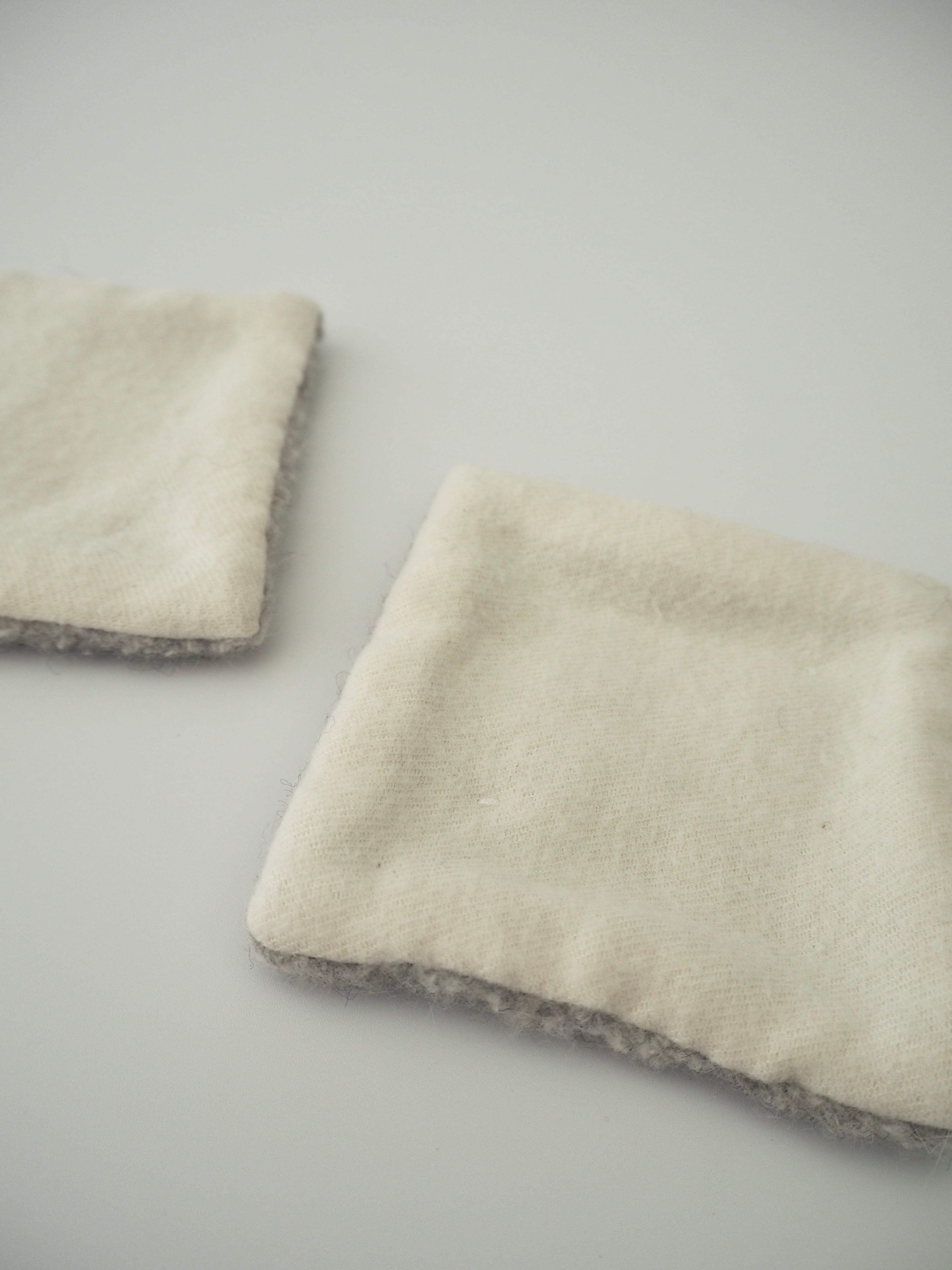 片側にシープボアの生地、もう一方にオーガニックコットンのフランネル生地を合わせて作ったコースターです。