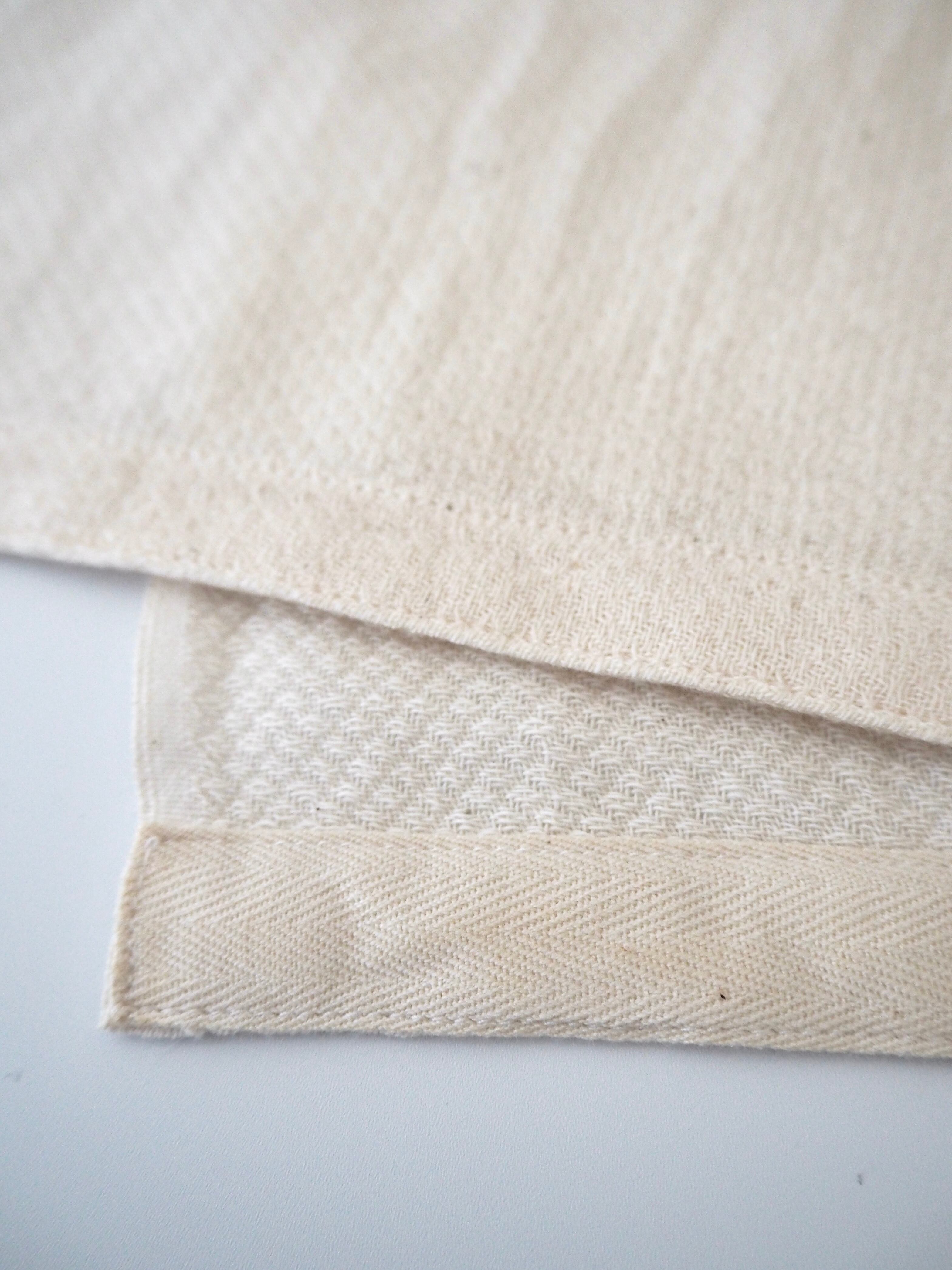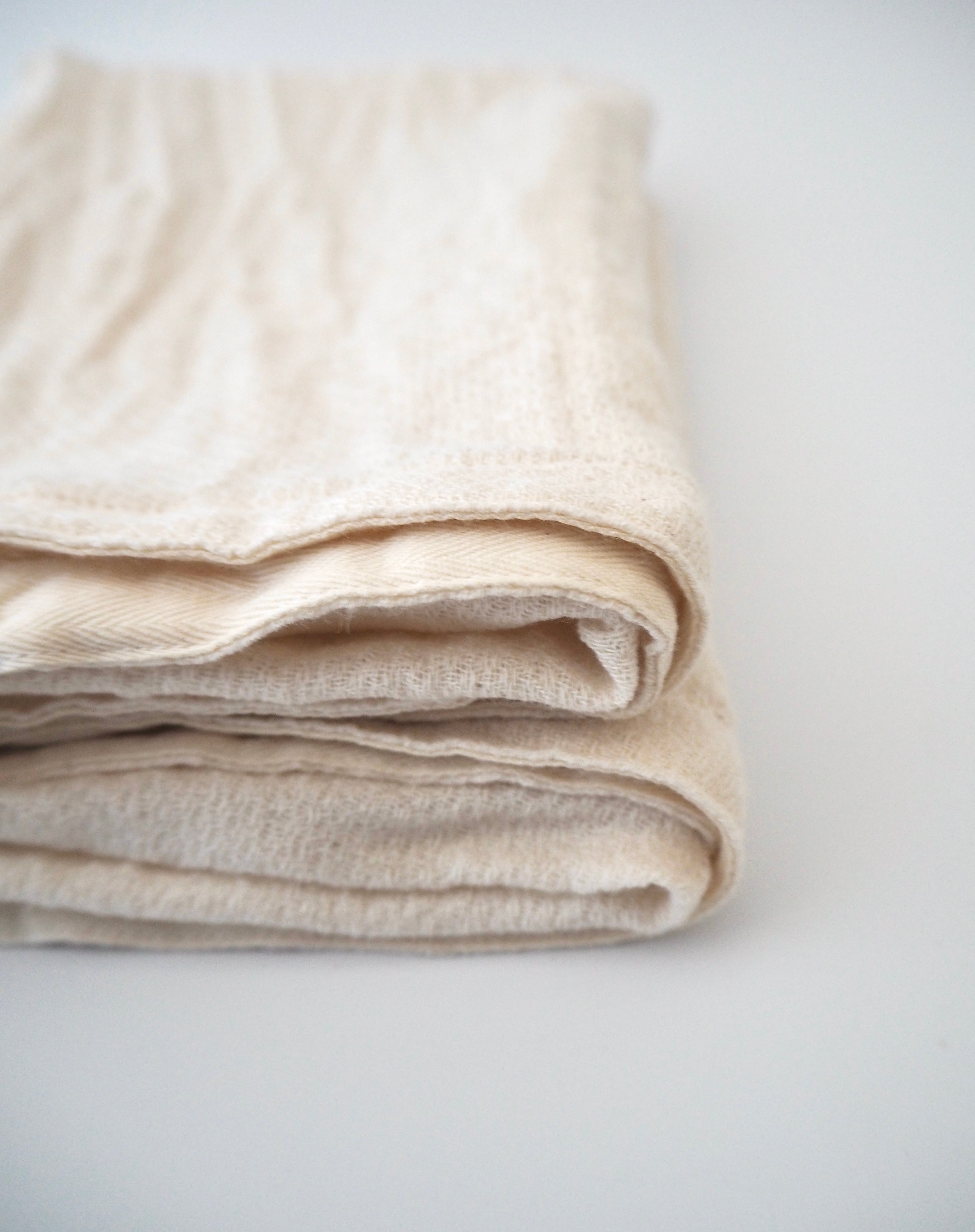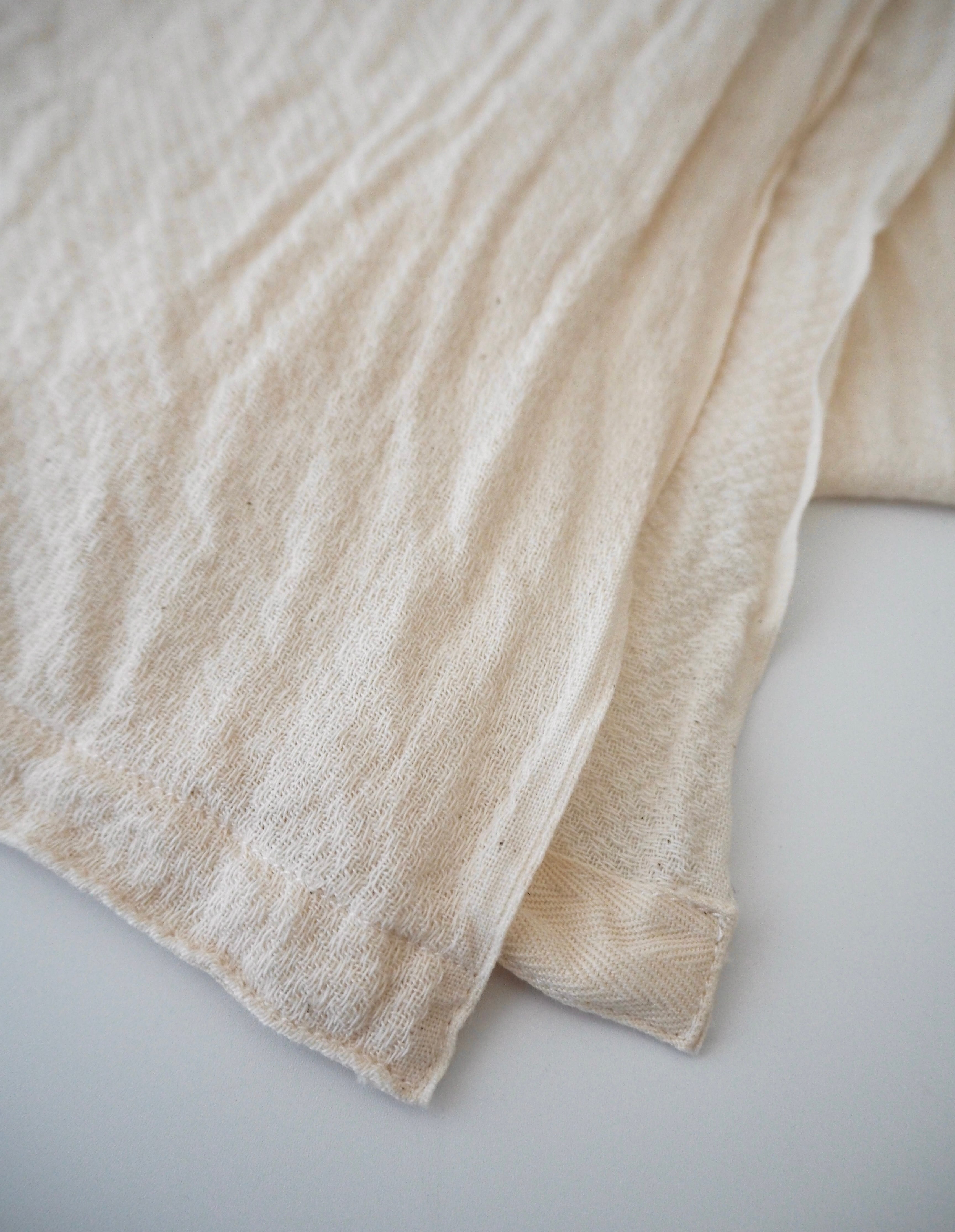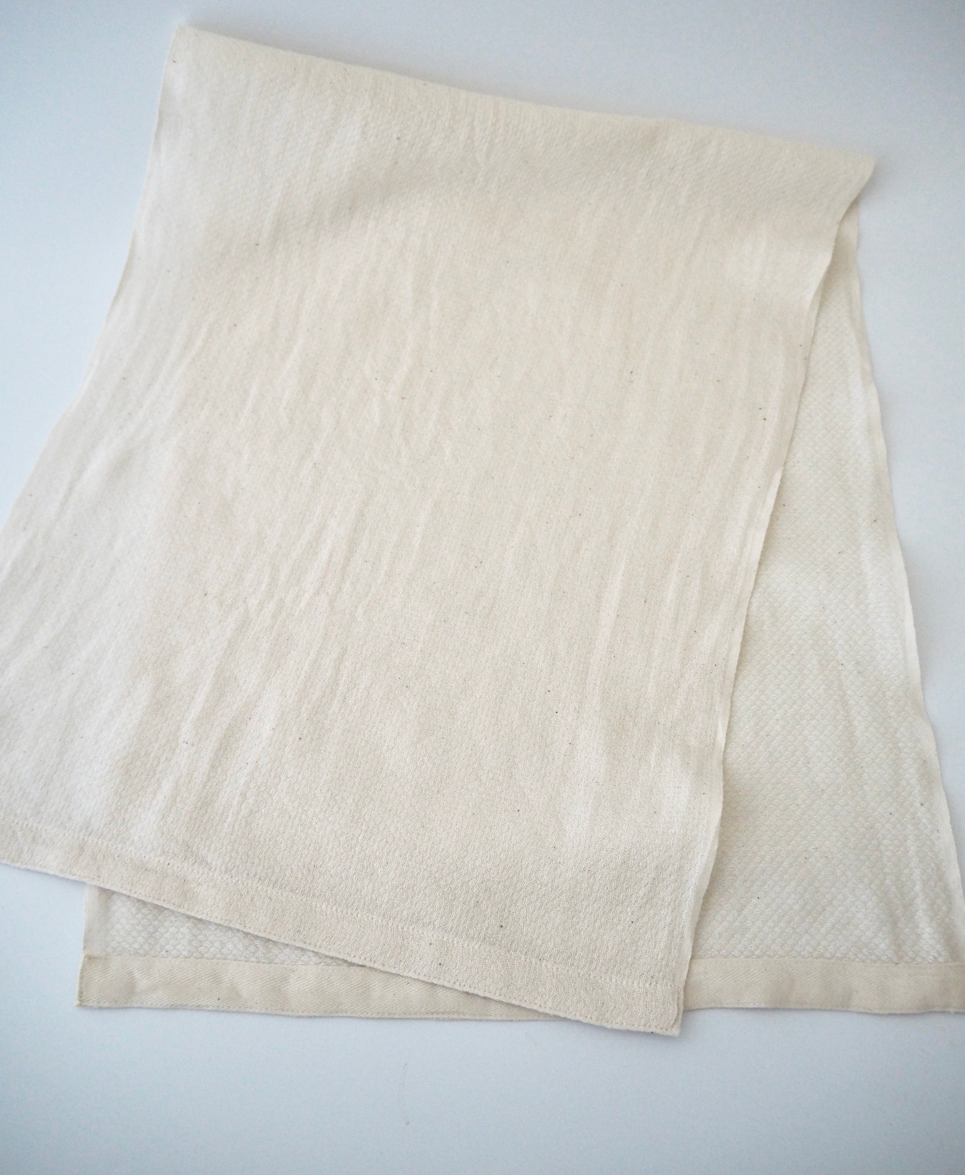 薄手のオーガニックコットン、おむつ用の生地をタオルに仕立てました。