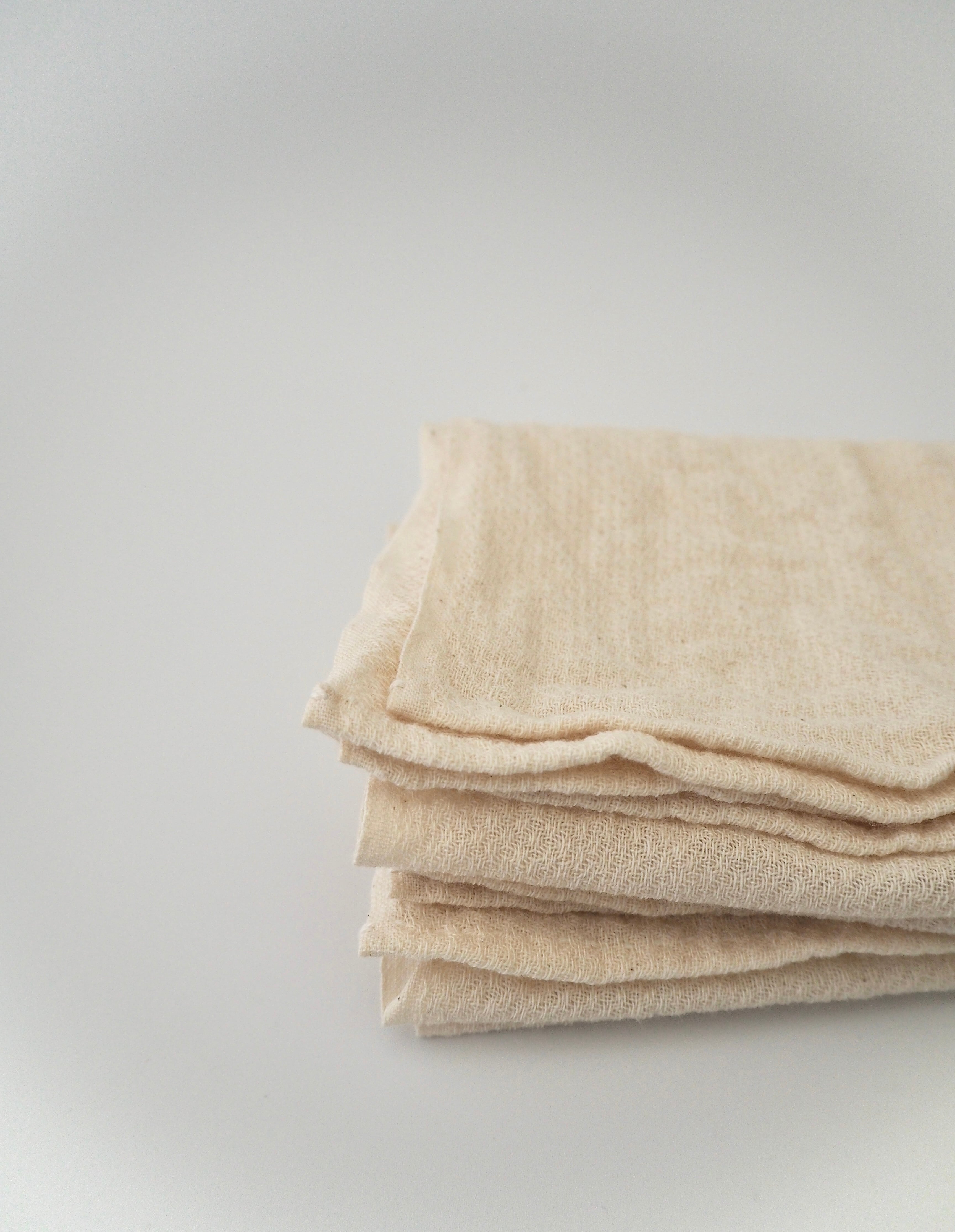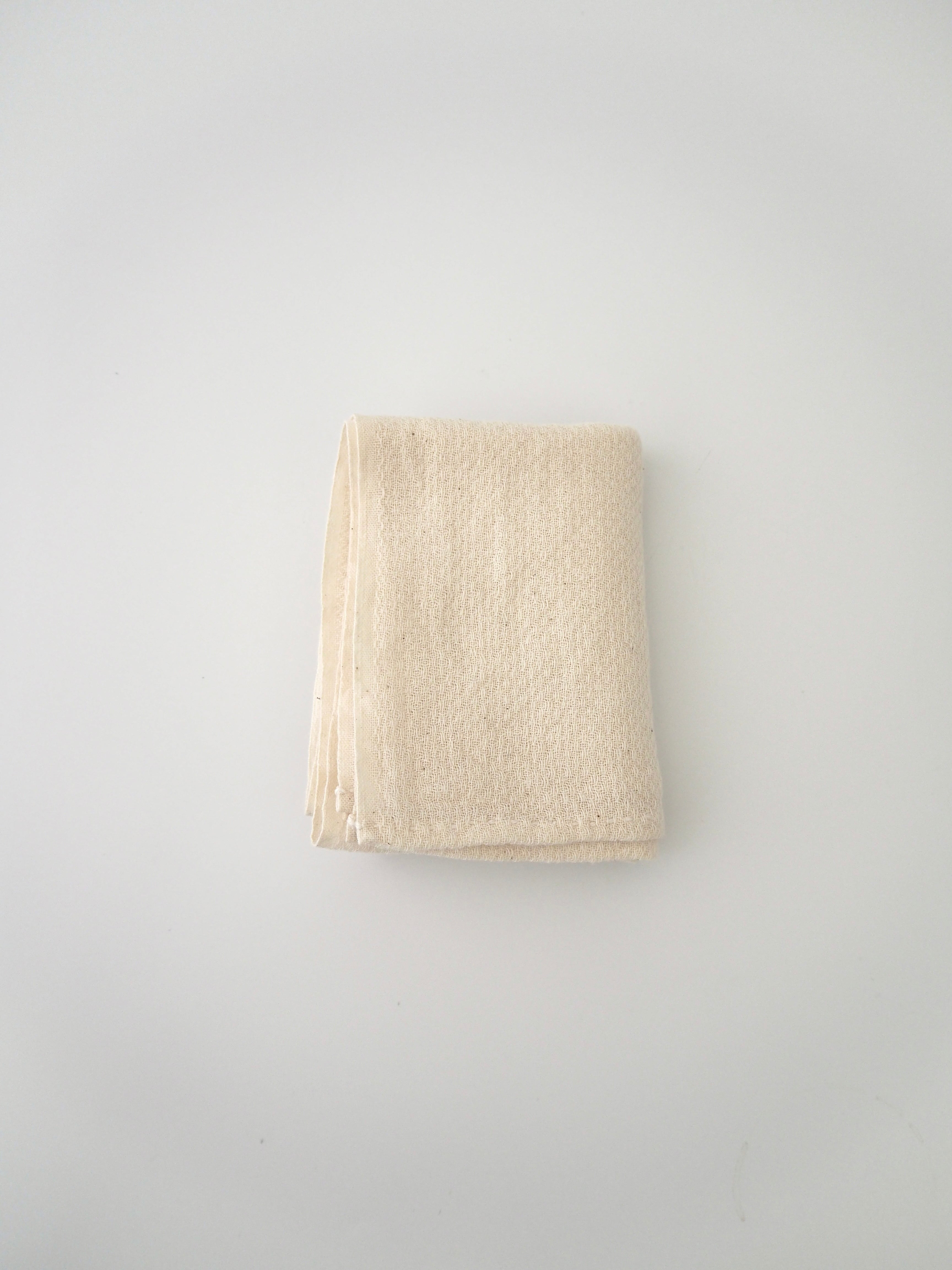 薄手のオーガニックコットン、おむつ用の生地をタオルに仕立てました。
