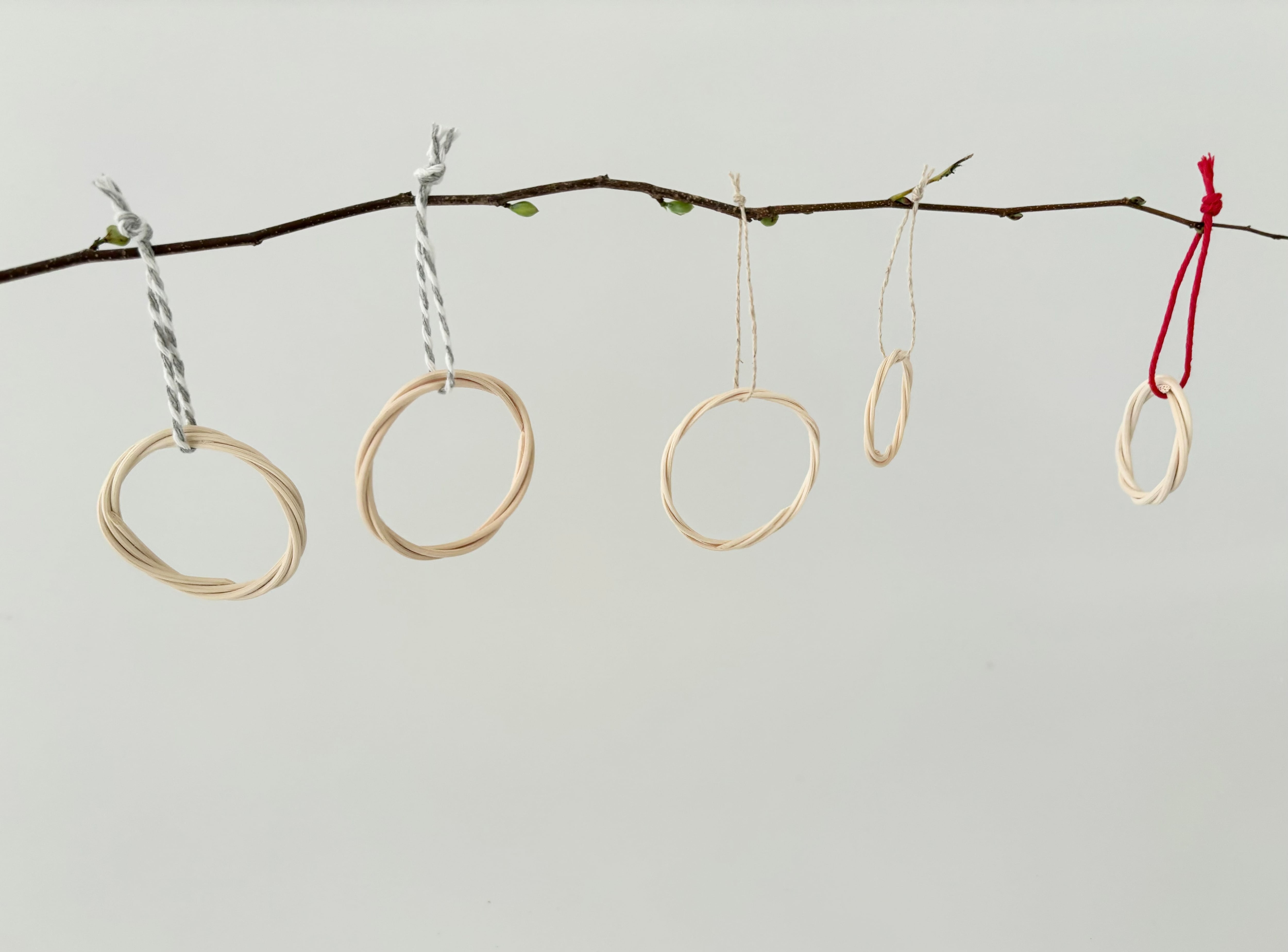 籐(ラタン)を使い、カゴや雑貨・アクセサリー等を制作される「shinonome」さんのリングのオーナメントの「大」です。