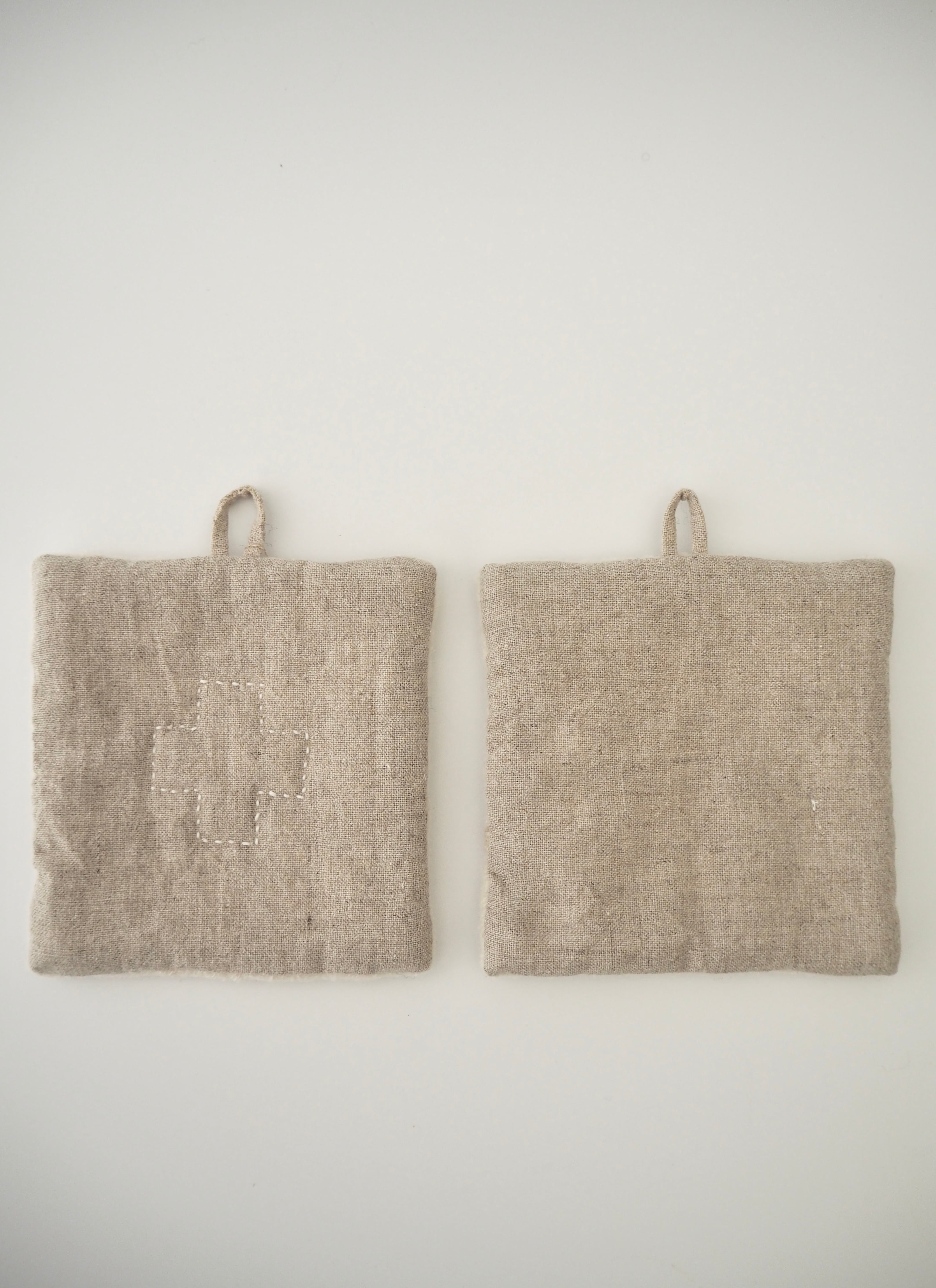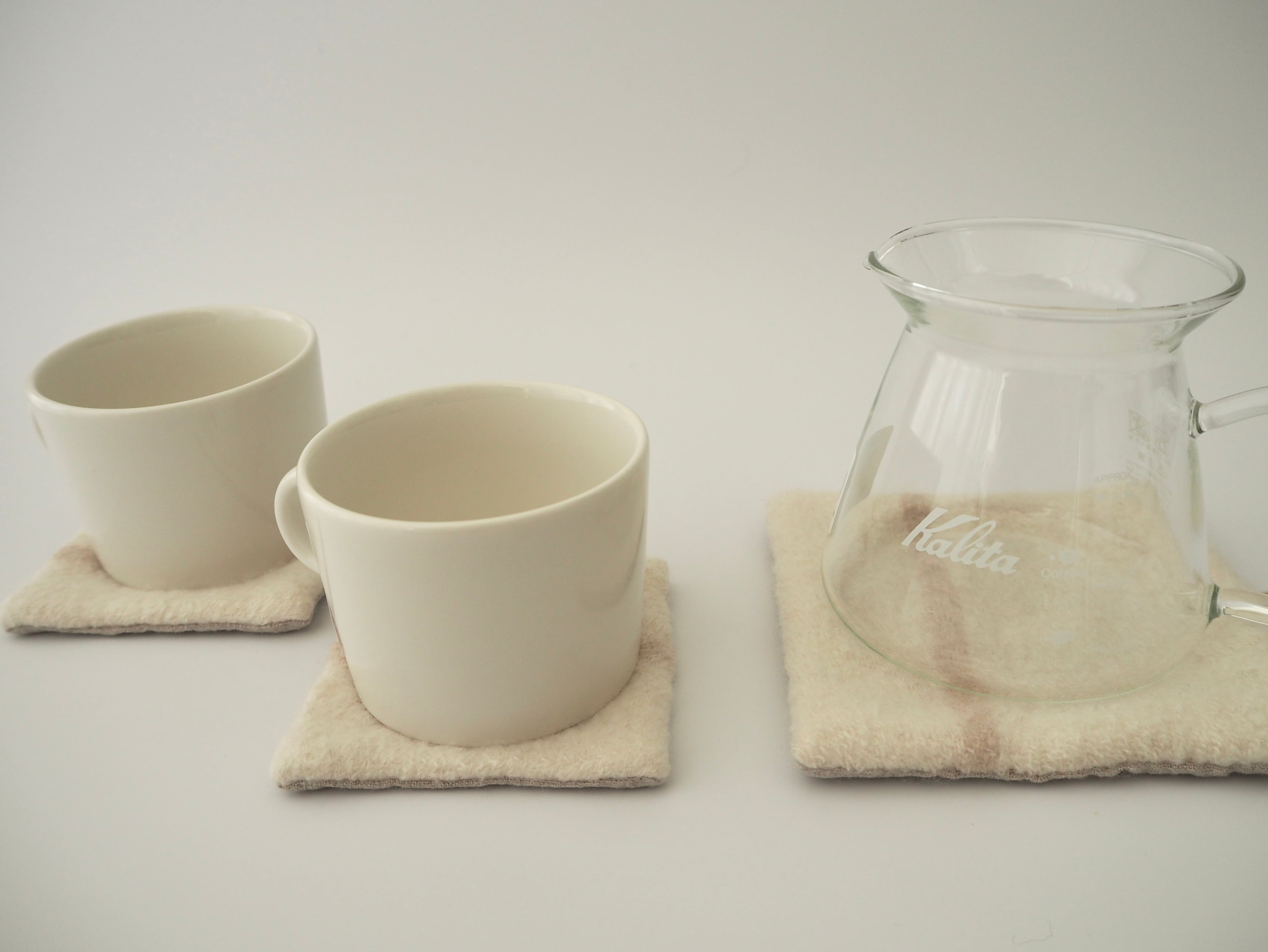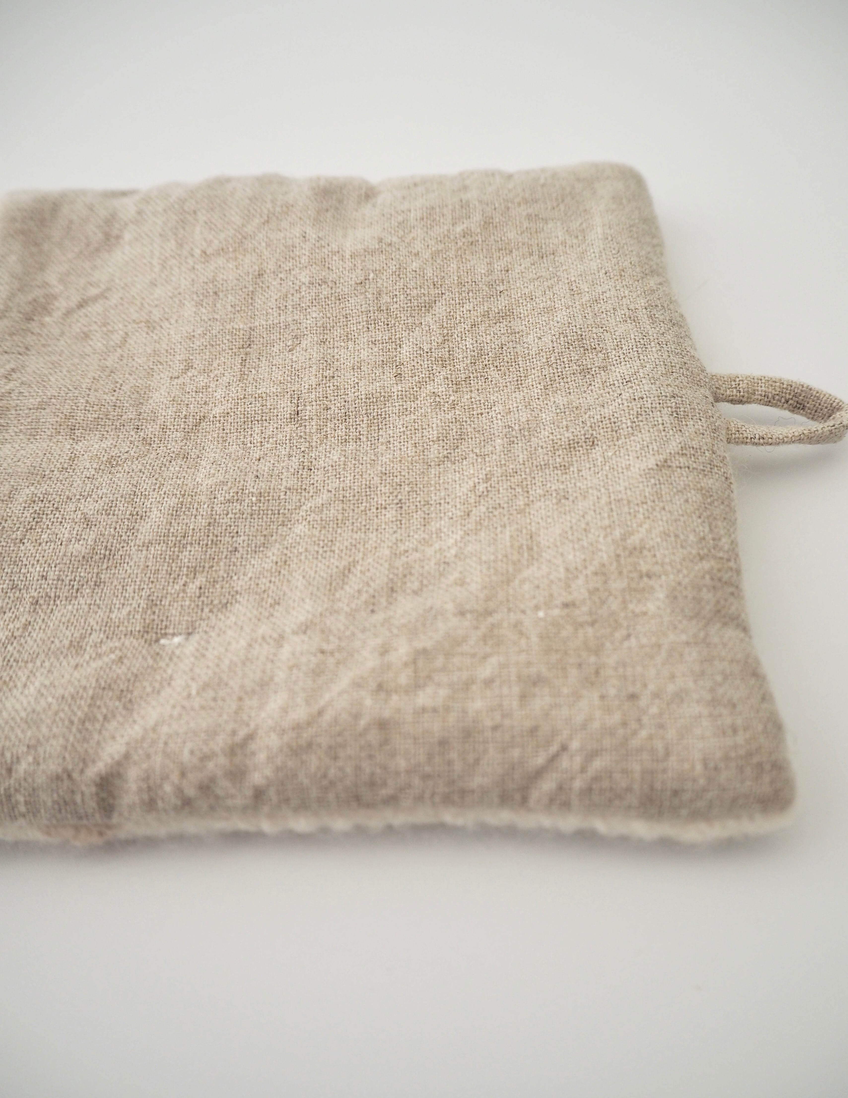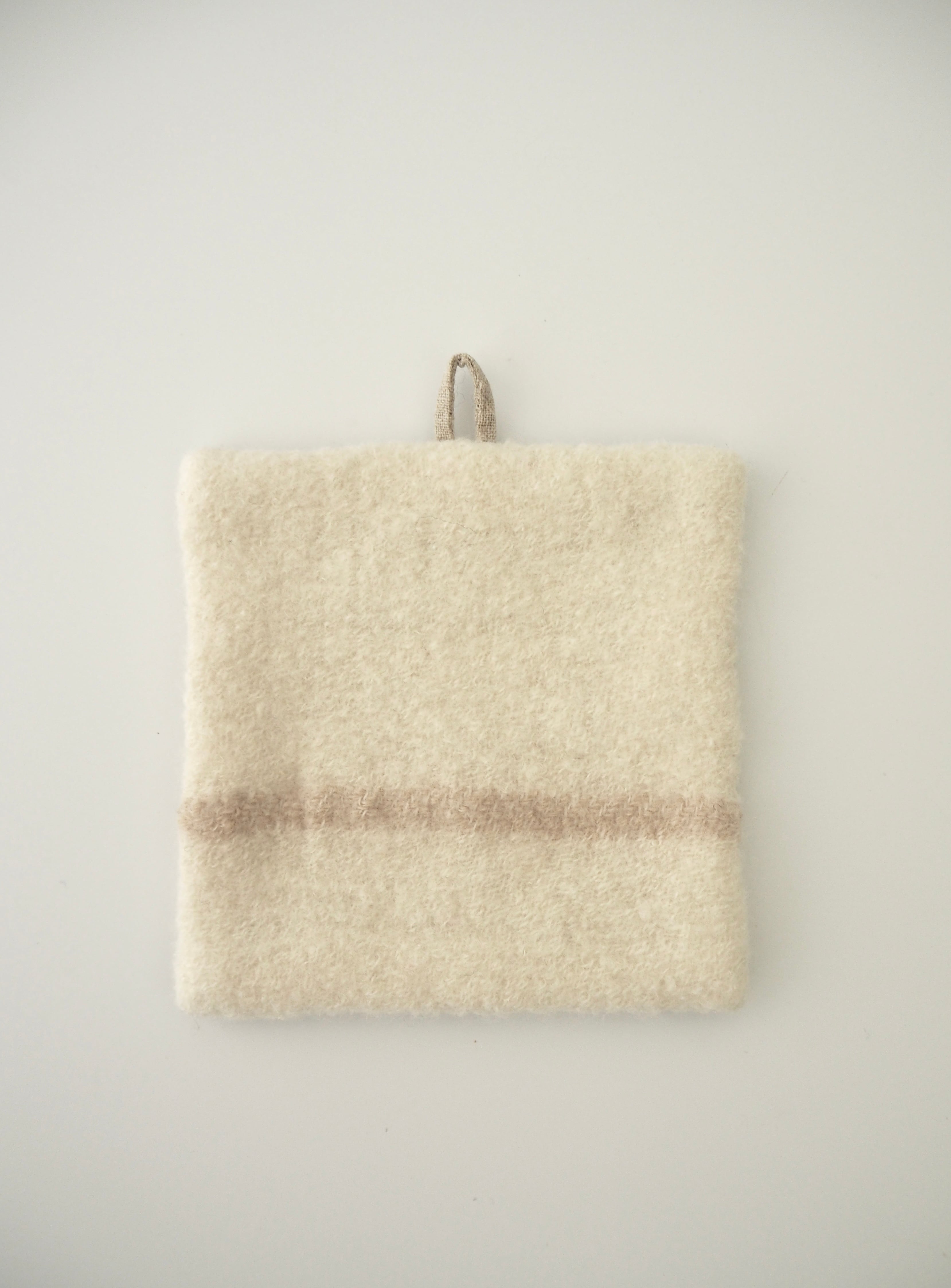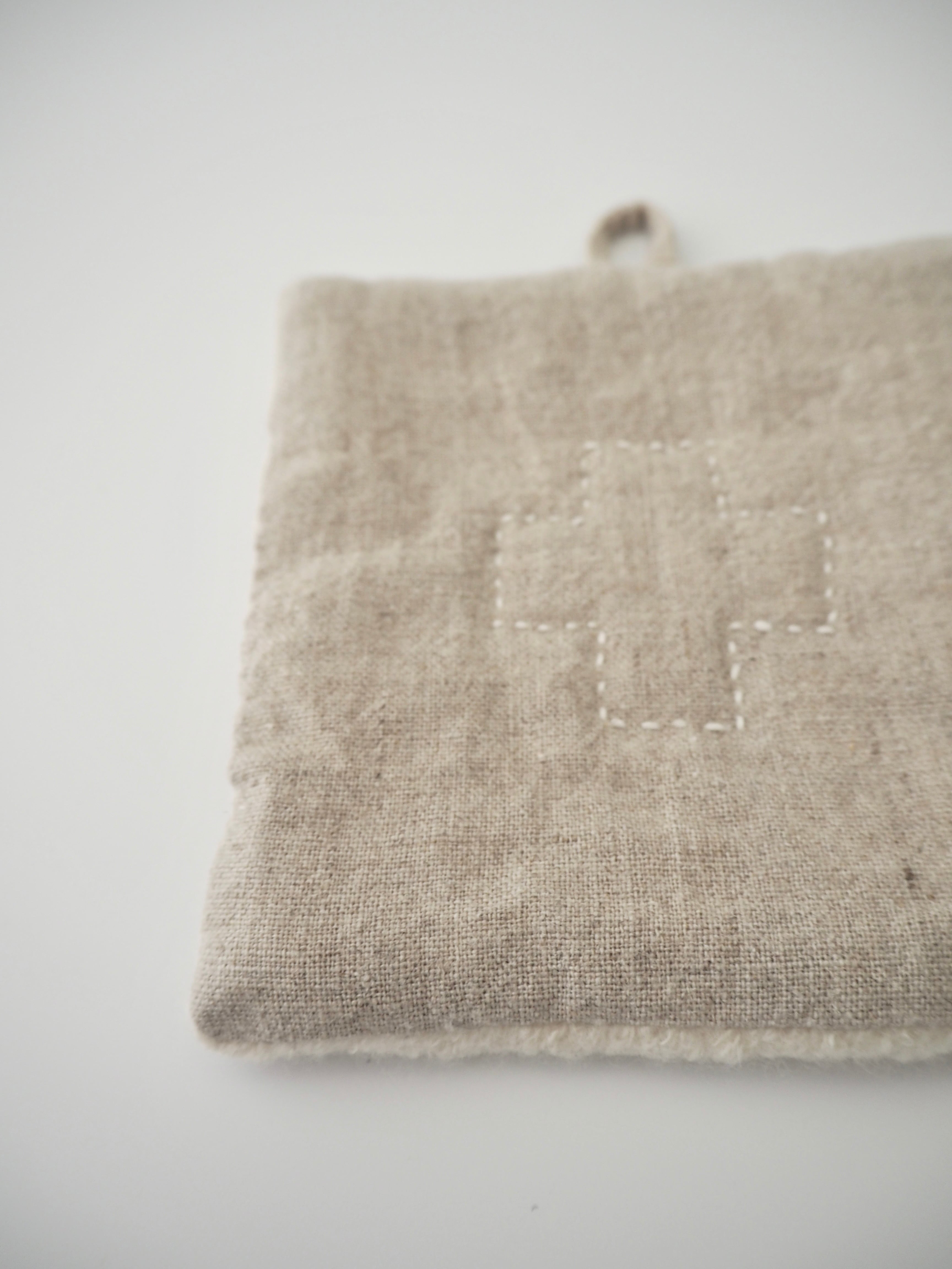 片側にカシミヤ、もう一方に麻(ラミーリネン)の生地を合わせて使ったポットマットです。